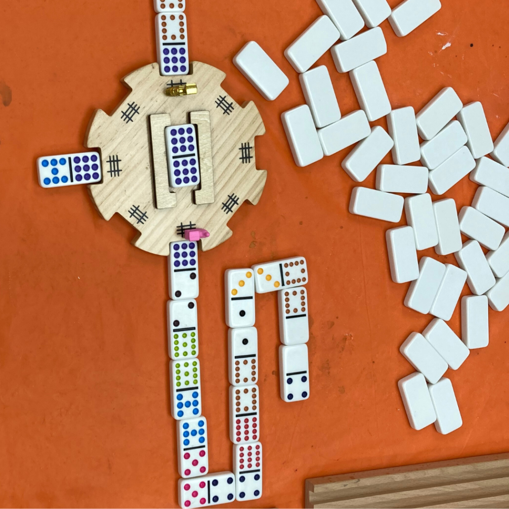All aboard the Games Club train!   The current featured game is train dominoes.   No ticket or experience needed.