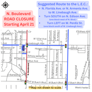 Since the Life Enrichment Center is on N. Boulevard, this will affect how people drive to the L.E.C. during the next couple of weeks. Try to allow extra drive time when heading to classes.